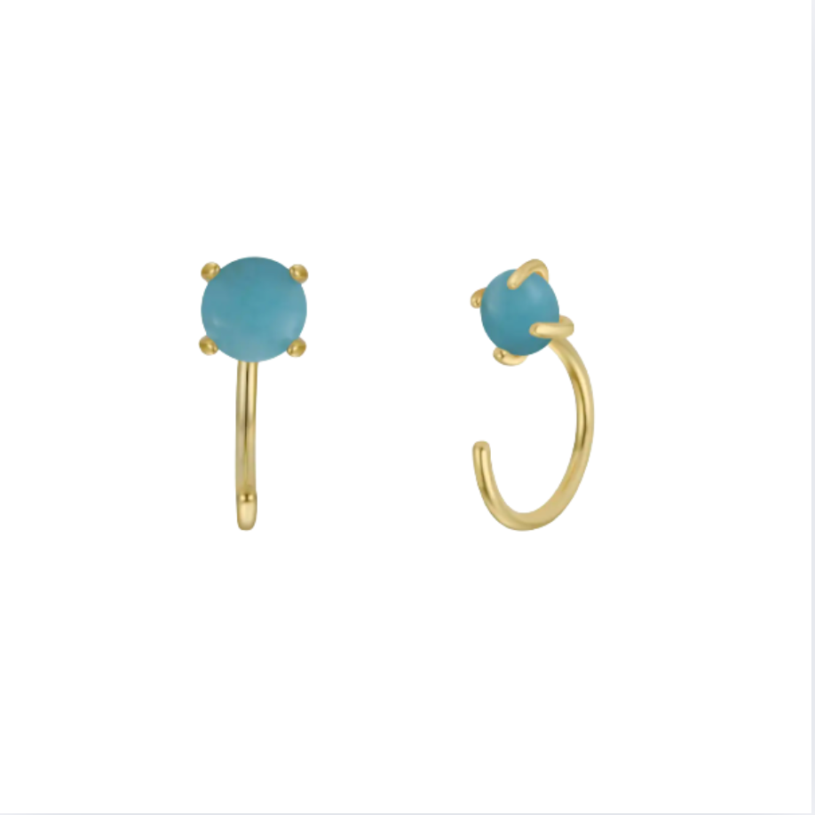These Huggies feature a cz stone on a petite hoop. Loop the non-stone end through like you would a regular post, and let these dainty earrings hug your ear tight.