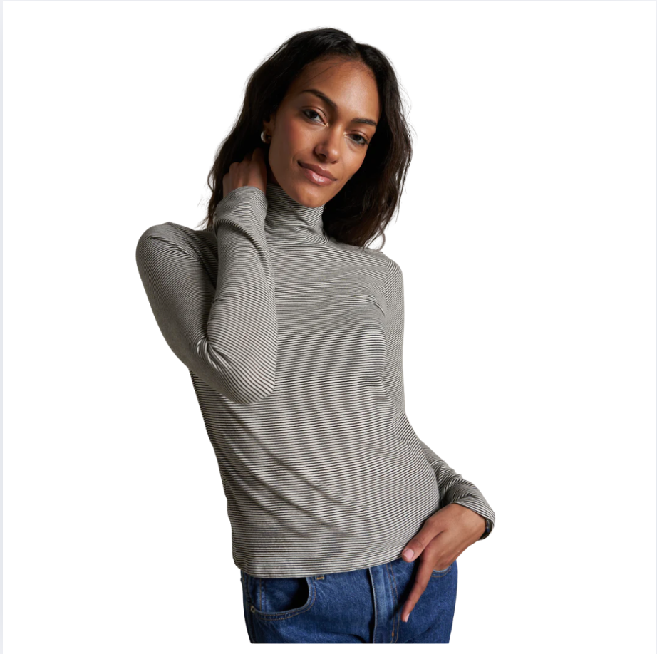 the cindy top is part of our recycled cotton collection. softly structured with a close fit and lightweight feel, it’s designed with a classic turtleneck silhouette that hugs just right. this is the kind of piece that makes layering feel intentional, but it’s just as good worn on its own.