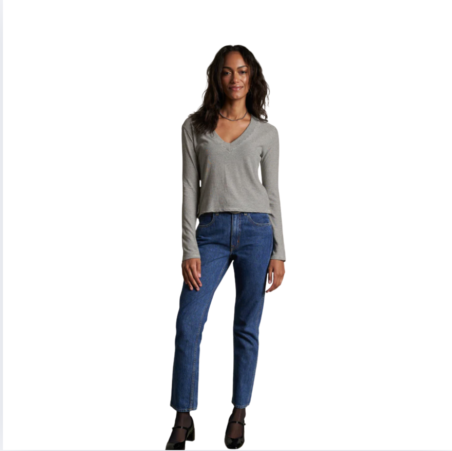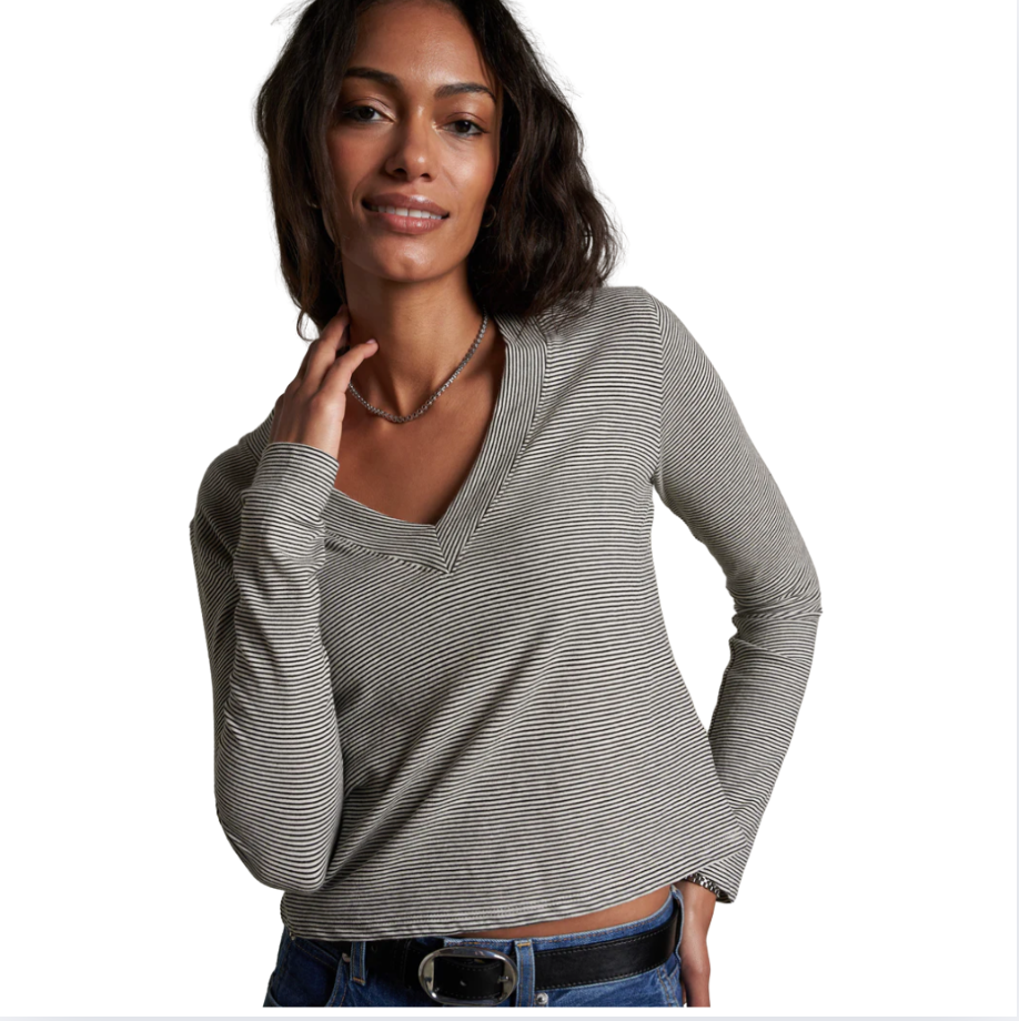 due to popular demand, fiona is our new long sleeve v neck for fall in our signature recycled cotton blend. this fabric was inspired by a vintage shirt we found years ago at the paris flea market that we've hung onto forever.