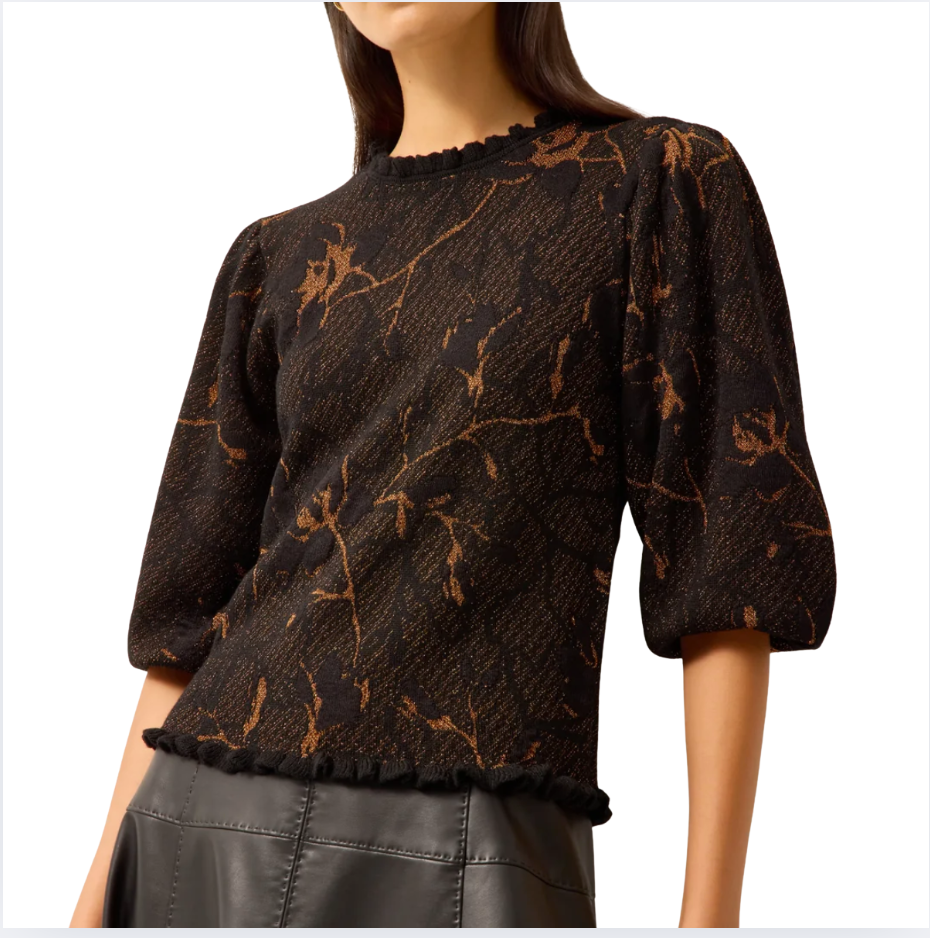 Cotton Cable Long Sleeve Crew with Frayed Edges